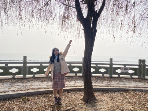 她同我们讲“以身作则”这四个字常常激励着自己不懈努力,她的外公是一名老党员,曾在四川观龙乡工作16年,在那里兼任党委副书记和乡长。那时因为工作需要,常常天不亮就起床,很晚才能结束工作,但他一坚持,就是十余年。离开的原因,是因为连轴的工作已经让她出现结石性胆囊炎和心脏病,不得不手术并调岗。现在的她,也一直在向前辈学习,认真工作,努力做实事,在大学期间,她多次进行义务献血、在成都、上海两地进行WAIC等志愿活动,也突破自己作为主讲进行对外汉语支教,累计志愿时长超400h。她说:“我们这群后浪,都应该充满蓬勃朝气,在时代洪流中奋楫前行,投身到志愿服务当中去!”