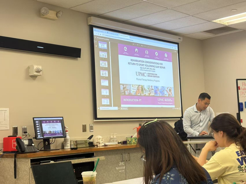 介绍完了SLAP损伤的发病原因和易发人群,Tyler Ho教授从一个自身的运动队康复师角度向我们列举了物理治疗师在面对SLAP损伤的分期治疗方案,训练动作从被动活动到主动锻炼循序渐进,最后基于关节活动度等客观测试结果促进运动员重返赛场。在理论讲述完毕后,他也向我们分享了他所处理过的病例,同学们从全新的治疗师角度了解了处理运动损伤的康复。