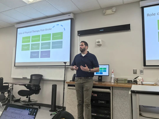 6月26日,Daniel教授从康复物理治疗师视角讲解了脑卒中康复。先介绍定义、分类与风险因素,借提问引发了同学们针对国内外脑卒中发病率的积极讨论。接着提出因大脑动脉分支特点,患者卒中后症状(感觉、肌肉、语言、认知等)各异,其中对侧忽视症状引发同学们的好奇与探讨,课堂关联神经科学相关知识,帮助同学们温故知新。