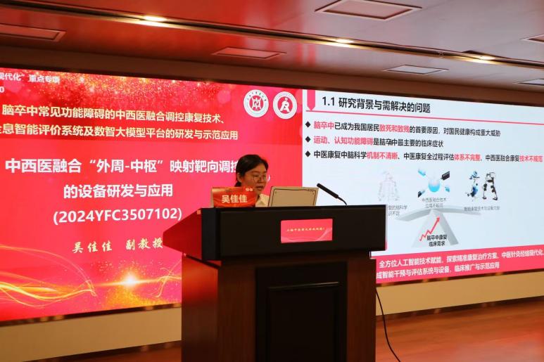 课题二:必赢bwin官网附属岳阳中西医结合医院康复医学中心吴佳佳副教授强调中西医融合在神经环路重塑中的作用,提出通过“中医针灸+西医康复+智能设备”的协同模式,促进脑卒中患者神经环路重建。计划研发融合型干预设备,并开展多中心临床验证,推动个性化康复方案落地。