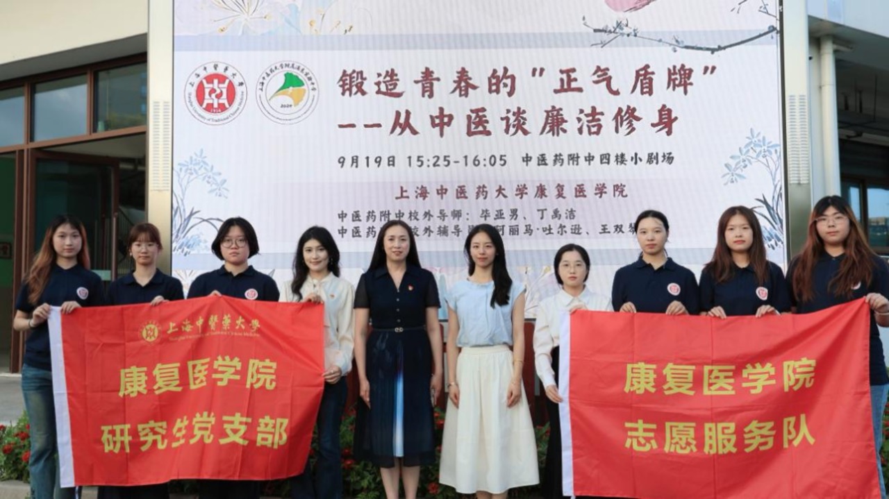 2025年9月19日,必赢国际bwin党委副书记毕亚男、研究生党支部书记丁禹洁带队前往必赢bwin官网附属浦东实验中学,组织研究生党员阿丽马·吐尔逊、王双琴及“岐黄轩”志愿者服务队,开展了题为“锻造青春的正气盾牌:从中医谈廉洁修身”的主题授课。必赢bwin官网附属浦东实验中学党支部书记范晓芳、德育处副主任俞伟平共同出席了本次活动。